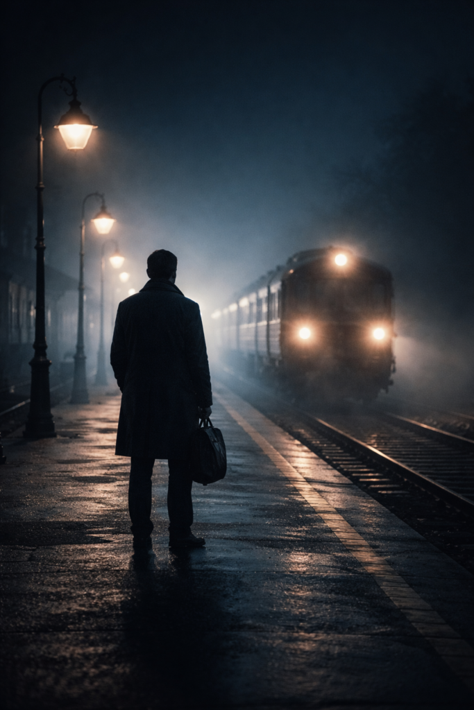 Aarav stood alone near the tracks, his coat pulled tight. He had been here many times before. Every night, the last train arrived at exactly midnight—and every night, someone waited. Sometimes that someone was him.